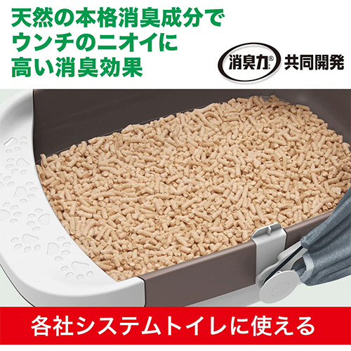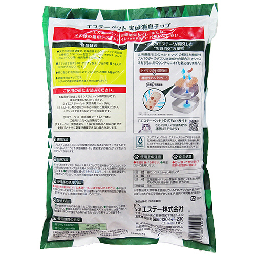 ●天然の本格消臭成分、北海道産モミの木(トドマツ)の粉体と機能性ナノパウダー配合で、オシッコだけでなく、ウンチのニオイにも高い消臭効果を発揮するトイレ用チップ、4L入です。