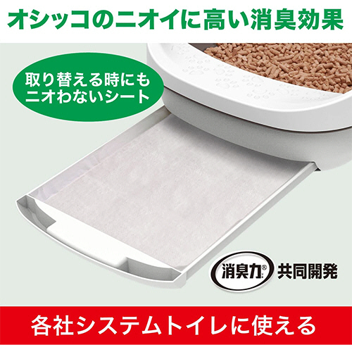 ●天然の本格消臭成分、北海道産モミの木(トドマツ)の粉体とクエン酸配合で、オシッコのニオイに高い消臭効果を発揮するトイレ用シート、20枚入です。