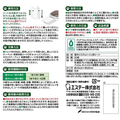 ●使用期間の目安/[猫ちゃん1頭の場合]1枚で約1週間、[猫ちゃん2頭の場合]1枚で約3~4日間