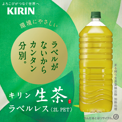 摘みたて生茶葉のようなあまみ香りひろがるおいしさの「キリン 生茶」。ラベルレスボトルです。