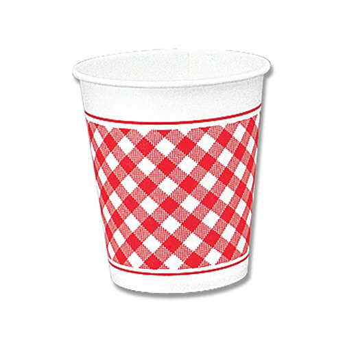 一般的なサイズの紙コップです。人気のギンガムチェック柄