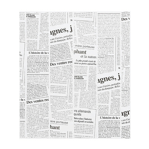 ●218×250mmのワックスペーパー、人気の英字新聞のデザインの黒です。100枚×50パックのセットです。