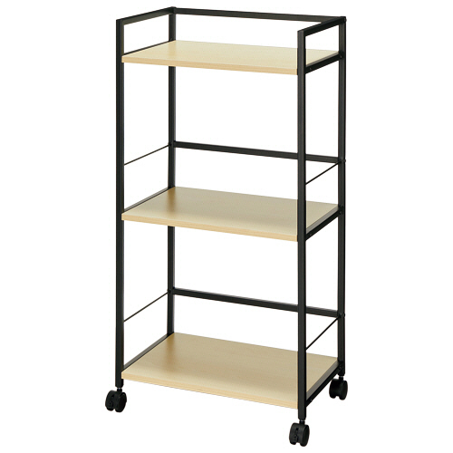 ●3段のデスクワゴン。天板はナチュラル、フレームはブラックです。