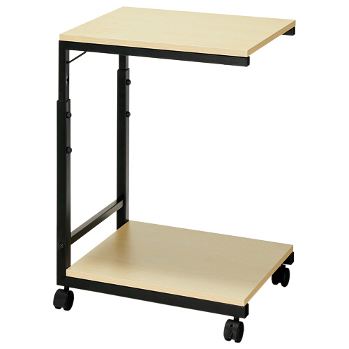 ●デスクの高さ、収納物にあわせて高さは3段階変えられるワゴン。天板はナチュラル、フレームはブラックです。