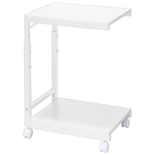 ●デスクの高さ、収納物にあわせて高さは3段階変えられるワゴン。色はホワイトです。