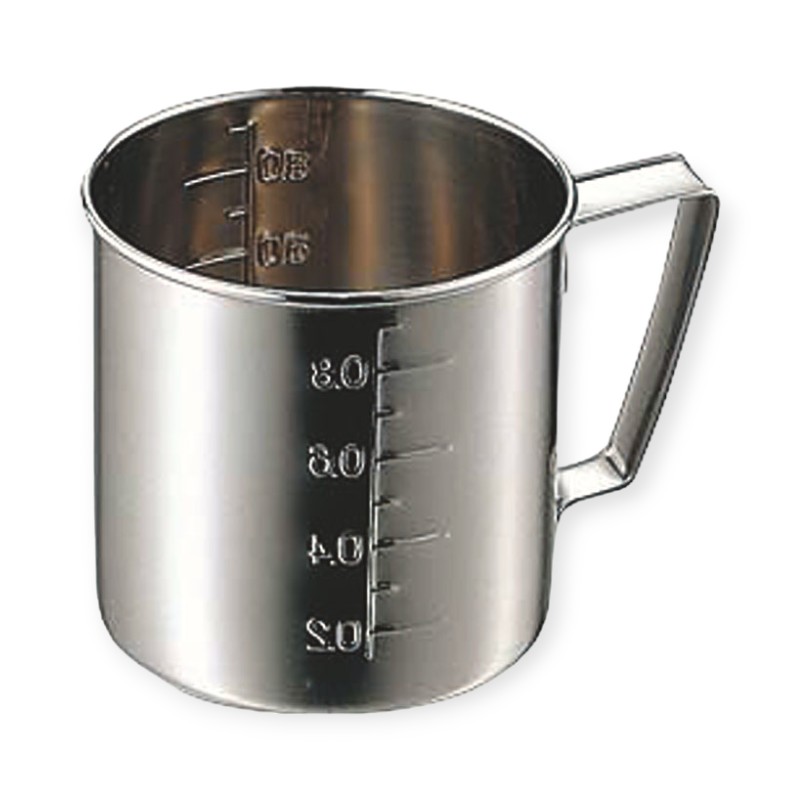 丈夫な18-8ステンレス製。見やすい目盛付き。材質:18-8ステンレス容量:200cc品番:036037