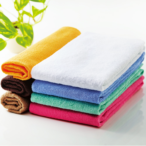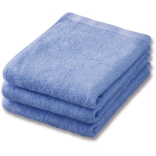 ●塩素系の漂白剤にも色落ちしにくいスレン染めフェイスタオルのライトブルーです。