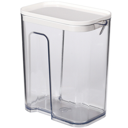 ●取っ手がないシンプルなデザインでコンパクト。1Lサイズのスマート冷水筒、色はホワイトです。