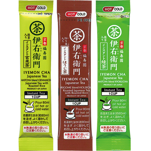 ●伊右衛門インスタント緑茶、玄米茶、ほうじ茶がそれぞれ30スティック入っています。