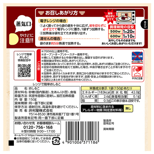 レンジで簡単おしるこ 150g 1セット(5食) 【東京23区ほか:約1週間遅延】