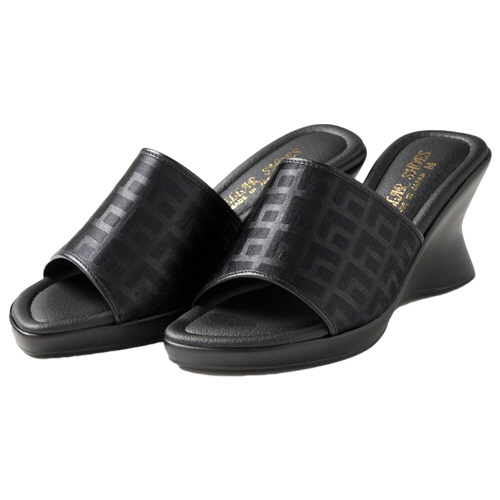 ●光沢のある生地にシックで上品なデザインのミュール。適応サイズ22.0~22.5cmです。