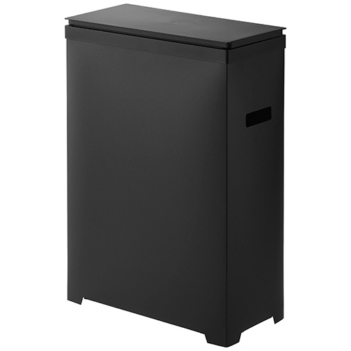 ●蓋が横に開くので高さが抑えられパントリーや食器棚下スペースにも収納できます。スリム蓋付き分別ゴミ箱、色はブラックです。