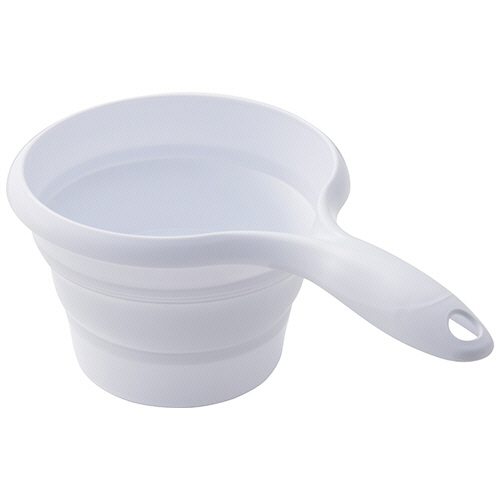 ●たたんで、貼る。おりたためる手おけ、色はホワイトです。