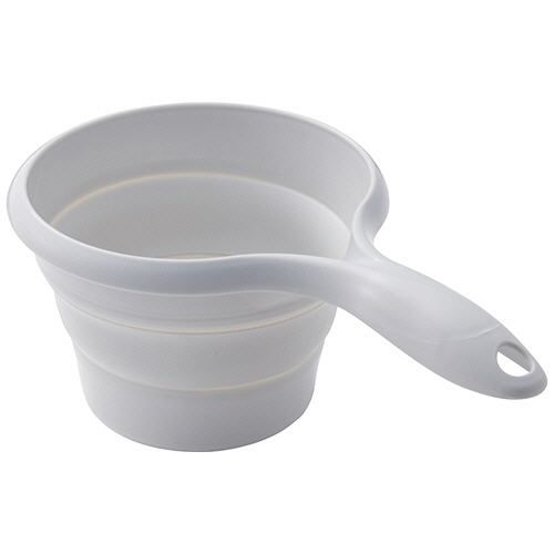 ●たたんで、貼る。おりたためる手おけ、色はグレーです。
