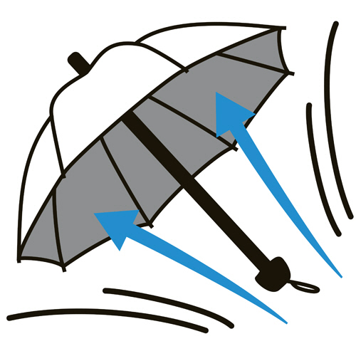 ●ひっくり返っても元に戻る耐風式。傘の内側に風を受けてしまい風の影響で反り返ってしまってもそのまま閉じれば元に戻ります!