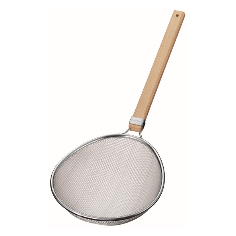 燕三条製。丈夫な18-8ステンレス製。材質:[網]18-8ステンレス、[柄]天然木品番:042110