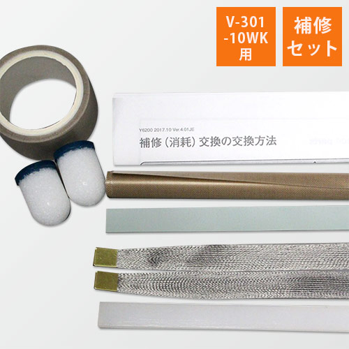 ●品名:補修セット●適合シーラー:T?130K【セット内容】●組紐ヒーター:2本●フローガラスシート:2枚●ガラステープ:1巻(25mm×5m)●シリコンシート:1本●シリコンゴム:1本
