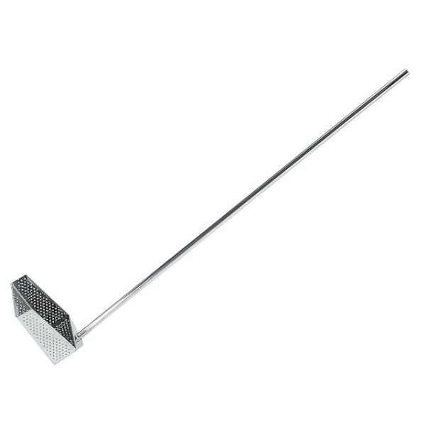 ヘドロ、残渣を救うのに最適です。グリストラップの清掃に便利です。パンチング穴φ3mm、全長126cm、ハンドル120cm。長辺×短辺×高さ:240×180×85mm全長:1260mm備考:パンチング穴Φ3mm、全長126cmハンドル120cm材質:18-8ステンレス長辺×短辺×高さ:240×180×85mm/全長:1260mm