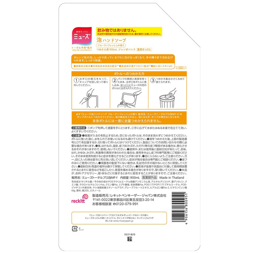 ●さわやかなフルーティフレッシュの香りの泡ハンドソープ詰替用、900mlのジャンボサイズです。