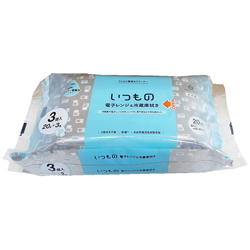 ●合成界面活性剤無添加なので冷蔵庫や電子レンジ等の中を安心して拭いていただけます。レンジ台、壁や床などの汚れ落としにも便利。20枚×3個パックです。