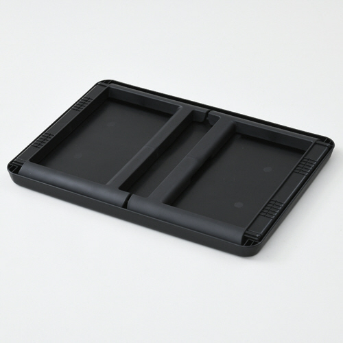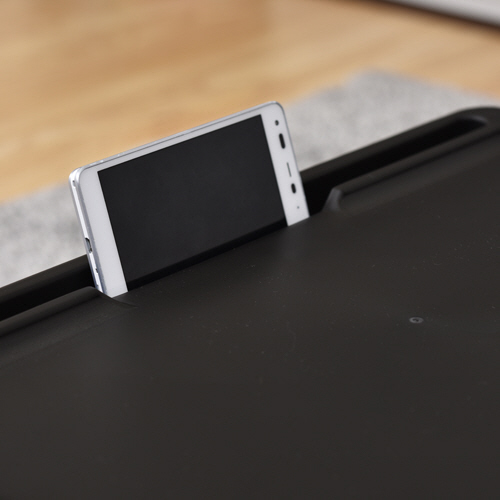 ●溝にはタブレットやスマホを立てることができ、コード用の穴(3ヵ所)を通して充電も可能です。