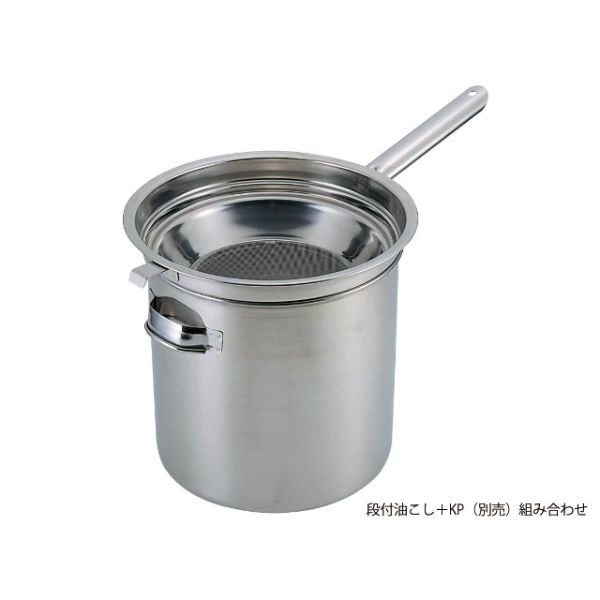 片手ハンドル付の段付油こしです。替え網はSサイズ。パンチ網仕様。サイズ:直径φ215×高さ60mm材質:18-8ステンレス直径φ215×高さ60mm