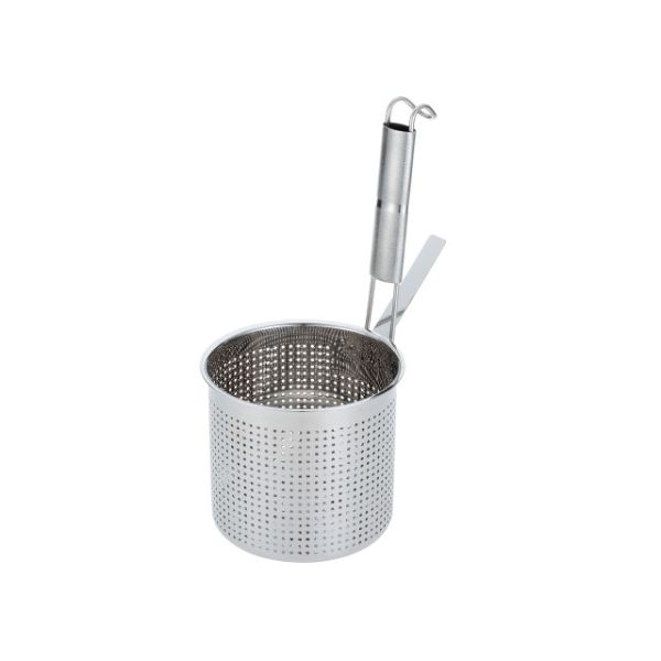 麺類等を茹で、水切りするのに最適です。サイズ:直径φ135×高さ140mm、パンチング穴φ2.5mm、ハンドル18.5cm材質:18-8ステンレス直径φ135×高さ140mm、パンチング穴φ2.5mm、ハンドル18.5cm