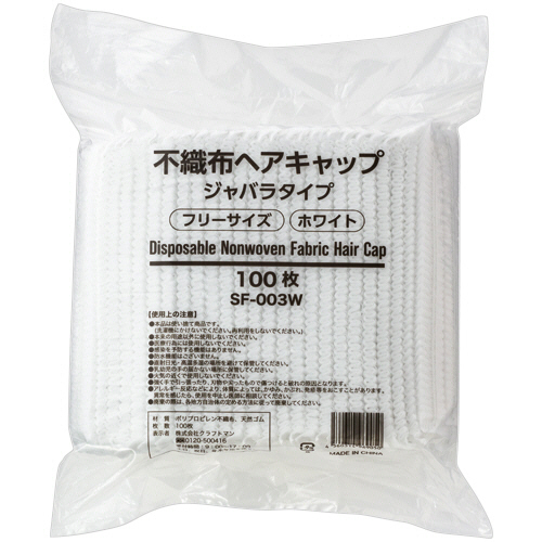 不織布ヘアキャップ ジャバラタイプ ホワイト 1パック(100枚)