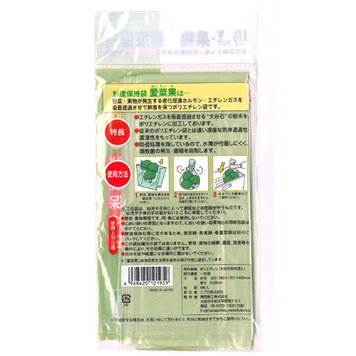 ●野菜・果物が発生する老化促進ホルモン、エチレンガスを吸着透過させて鮮度を保つポリエチレン袋です