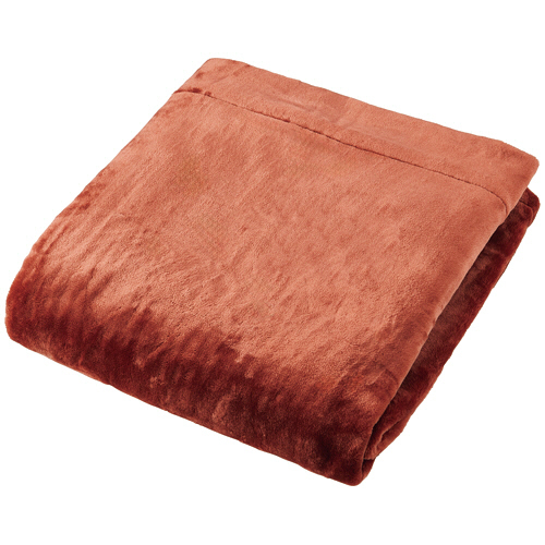 ●吸湿発熱繊維を使用したしっとりなめらかな肌ざわり、シングルサイズの毛布。色はエンジです。