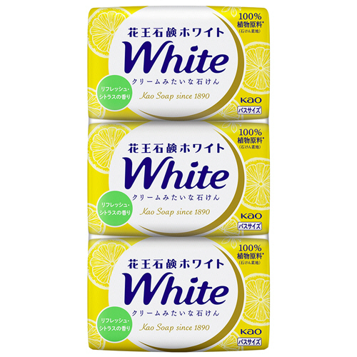 ●豊かな泡立ちと、きめ細かでのびの良い泡のために、植物原料「天然やしミルク(※1)」をたっぷり使用。すっきり爽やかリフレッシュ・シトラスの香り、バスサイズ130g、3個入。
