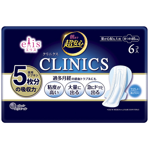 エリス 朝まで超安心 クリニクス(量が心配な人用) 羽つき 1パック(6枚) 【5-8営業日遅延】
