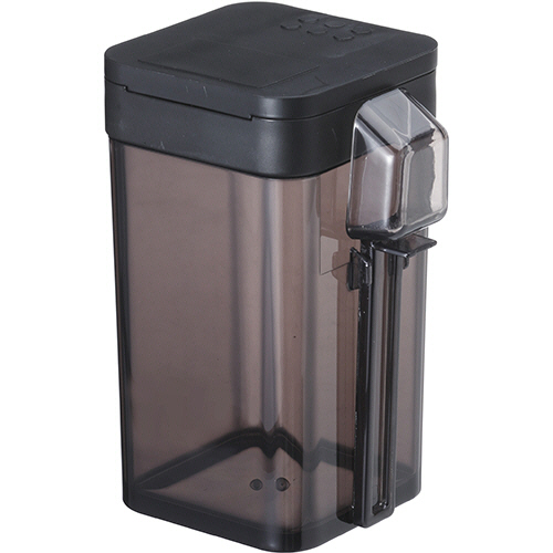 ●使いたい量が片手で調節できる調味料保存容器、色はブラックです。