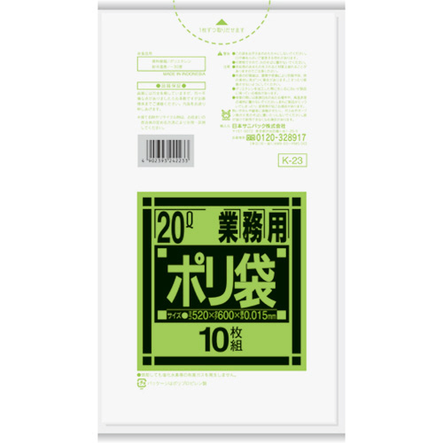 Kシリーズ 業務用ポリ袋 強化 半透明 20L 0.015mm 1パック(10枚) 【5-8営業日遅延】