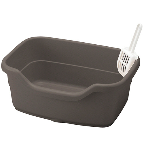 ●固まる猫砂用、オープンタイプの深型ネコトイレ。幅40cm、色はダークグレーです。