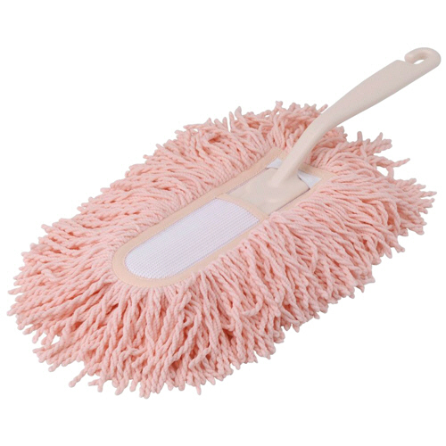 マイクロファイバーのふさふさモップでホコリを絡め取ります。