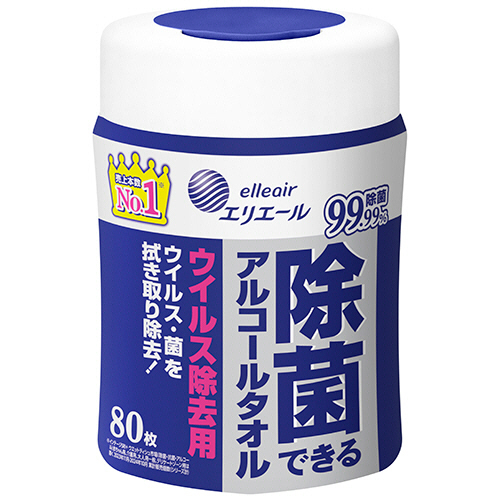 ●ウイルス除去用・除菌できるアルコールタオル。本体80枚入り。詰替OK。