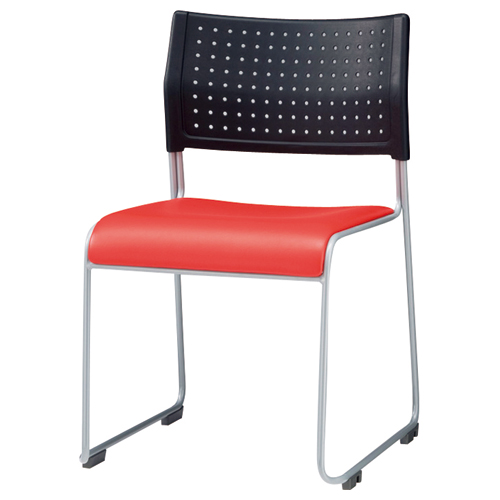 ●10脚までスタッキングできるレッドのチェア。