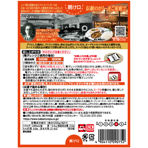 ●グリルした鶏肉にブイヨンのうま味、炒め玉ねぎのコクと甘み、ヨーグルトのコクを加え、スパイス3段仕込み製法で仕上げたコク深く芳醇な香りのチキンカリー。1人前200gです。