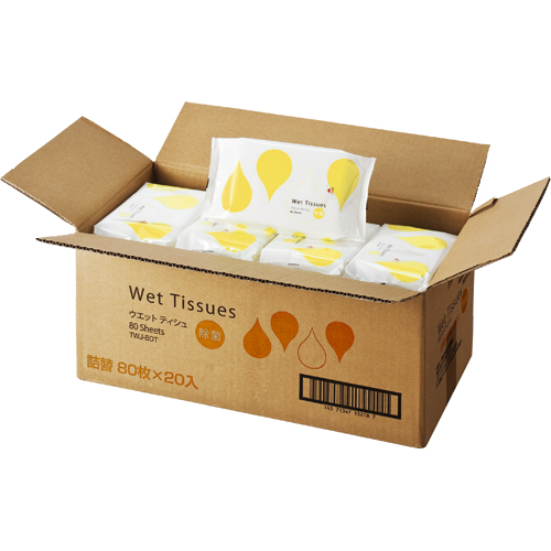 ノンアルコール除菌ウエットティッシュ 詰替用 1セット(1600枚:80枚×20パック) 【5-8営業日遅延】