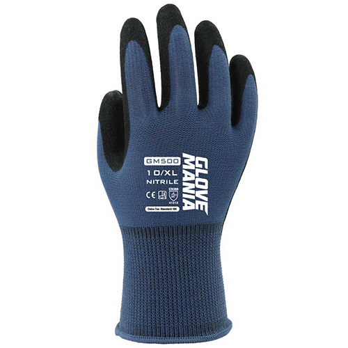 ●手にしなやかフィットする発泡ニトリルゴムコートグローブ XLサイズ。色はスチールブルーです。