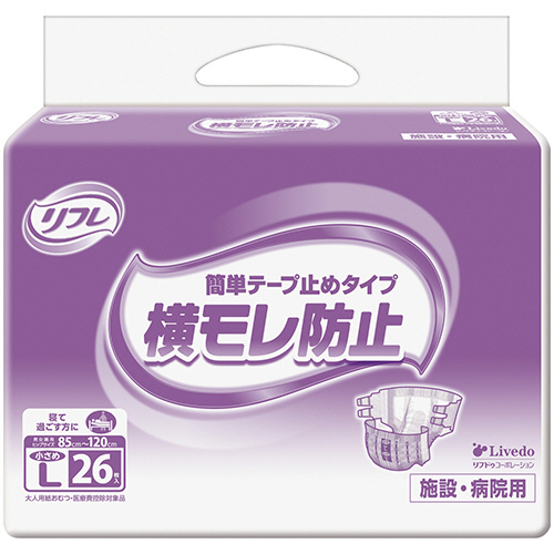 ●2つのギャザーがぴったりフィットして、流れ伝わる尿をしっかりせき止めるテープ止めタイプの小さめLサイズの26枚×3パックセット。