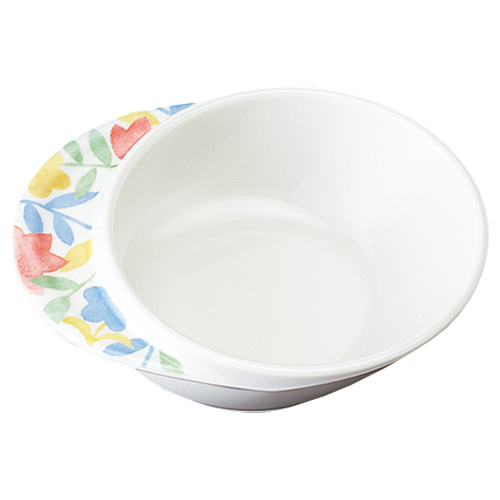 【ユニバーサルデザイン】すべり止め付きで安定感があり、すくいやすくて持ちやすい形状の食器です。