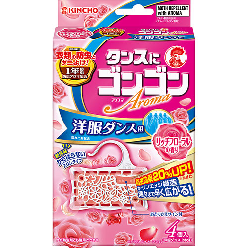 ゴンゴンアロマ 衣類の防虫剤 洋服ダンス用(防虫・防カビ・ダニ)リッチフローラル 1パック(4個) 【5-8営業日遅延】