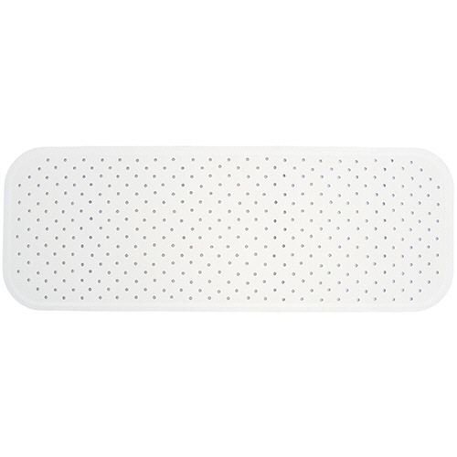 ●大型の浴そうにも対応できるロングサイズの浴そうマット、寸法約350×960mm、色はホワイトです。