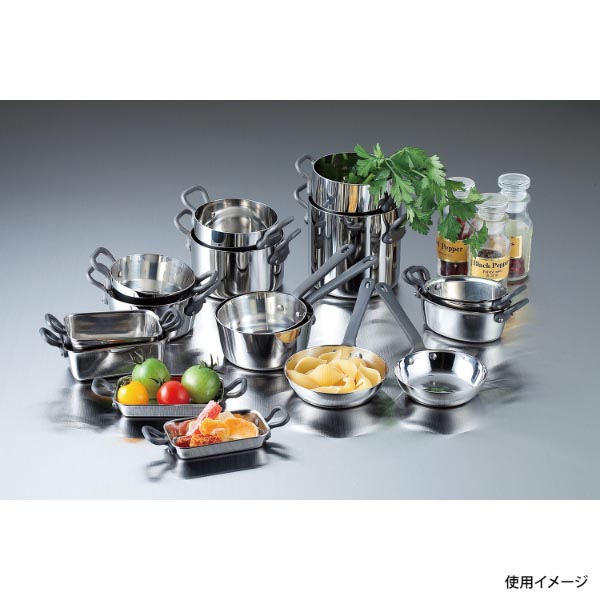 サイズ:95×61×H35mm材質:[本体]18-8ステンレス、[ハンドル]珪素合金硬質アルマイト容量:150ml95×61×H35mm