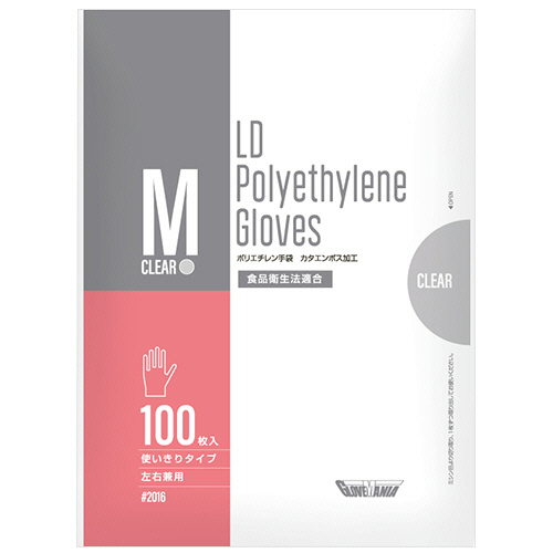 ポリエチレン手袋 カタエンボス クリア M 1セット(10000枚:100枚×100パック)
