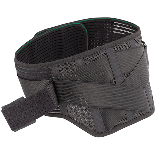 ●大判姿勢保持プレートが腰椎を幅広くサポートして、腰部を保護。