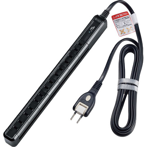●雷から接続機器を守る耐雷サージ機能付のコード長さ2m、7個口のスリムタップ。カラーはブラックです。