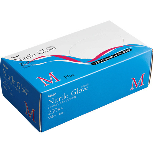 ニトリル 使いきり手袋 粉なし M ブルー 1箱(250枚)